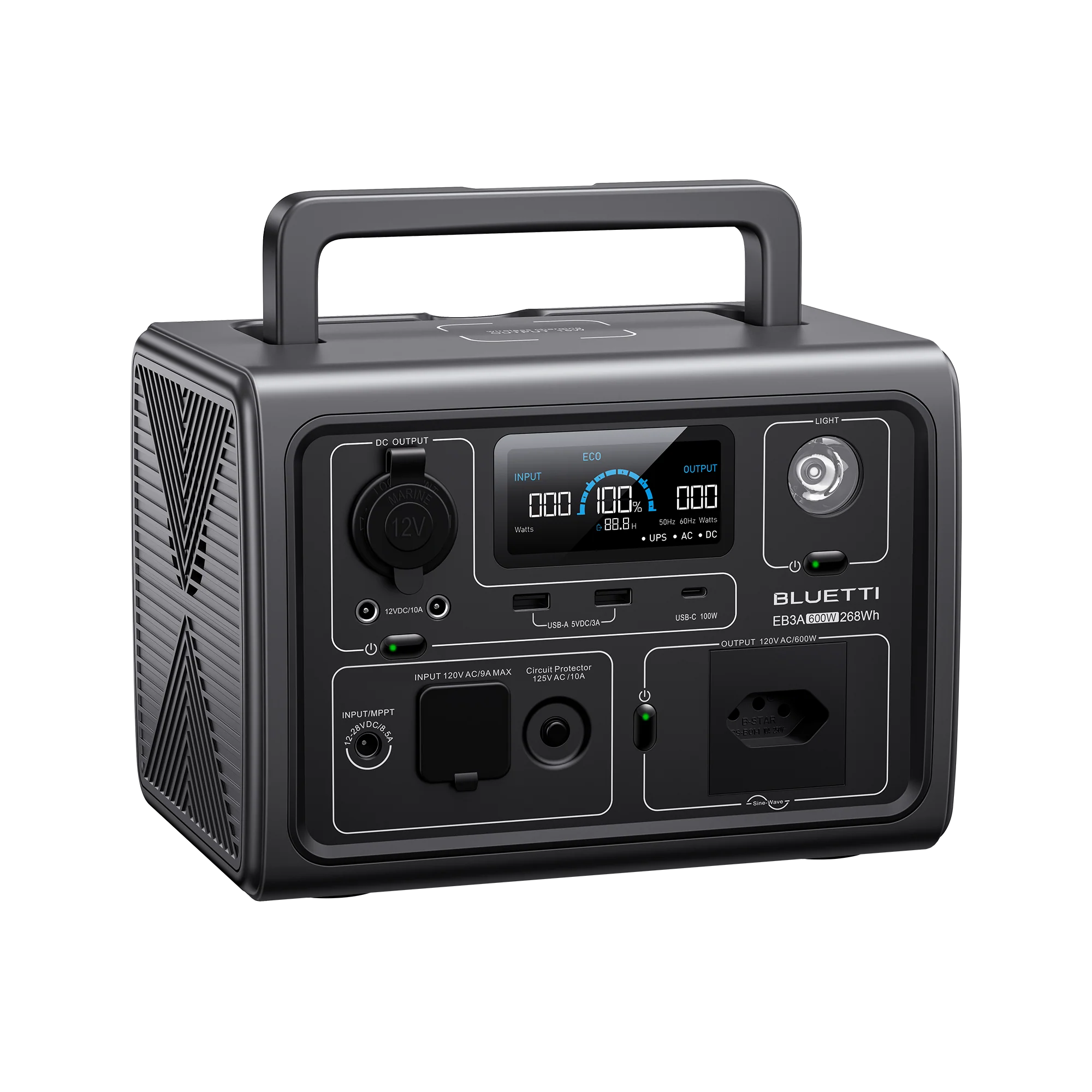 A Estação de Armazenamento de Energia Portátil BLUETTI EB3A é uma solução compacta e eficiente que combina portabilidade com desempenho impressionante. Com um inversor de onda senoidal pura de 600 W (pico de 1200 W) e uma capacidade de 268 Wh, ela é perfeita para alimentar pequenos eletrodomésticos, como liquidificadores, mini panelas de arroz e geladeiras pequenas, seja em casa ou em aventuras ao ar livre. Projetada para reduzir as emissões de carbono, o EB3A é leve e fácil de transportar, oferecendo energia limpa e sustentável onde quer que você esteja.